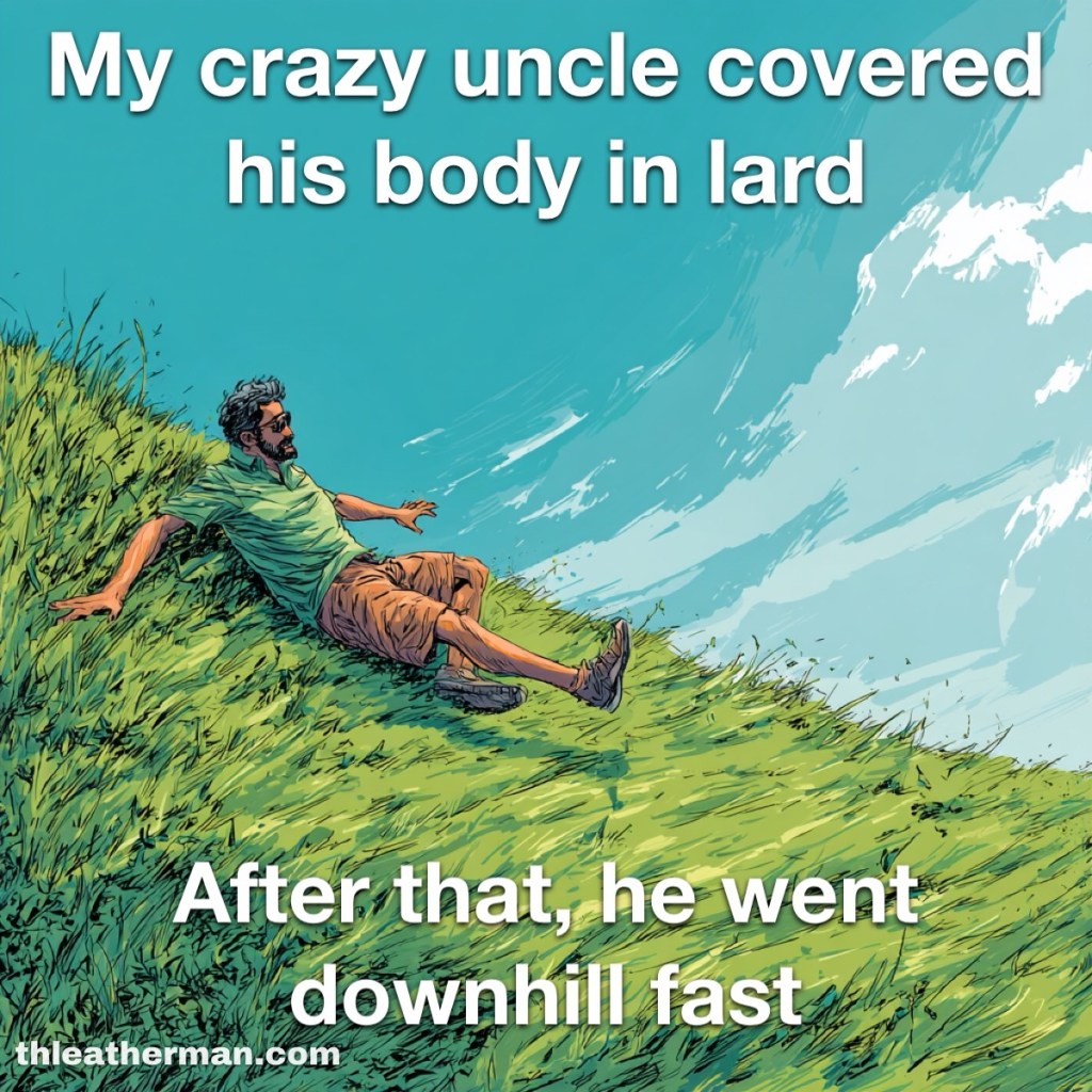 Slip up March 31, 2026 / TH Leatherman / Leave a comment Share this: Share on X (Opens in new window) X Share on Facebook (Opens in new window) Facebook Like Loading...